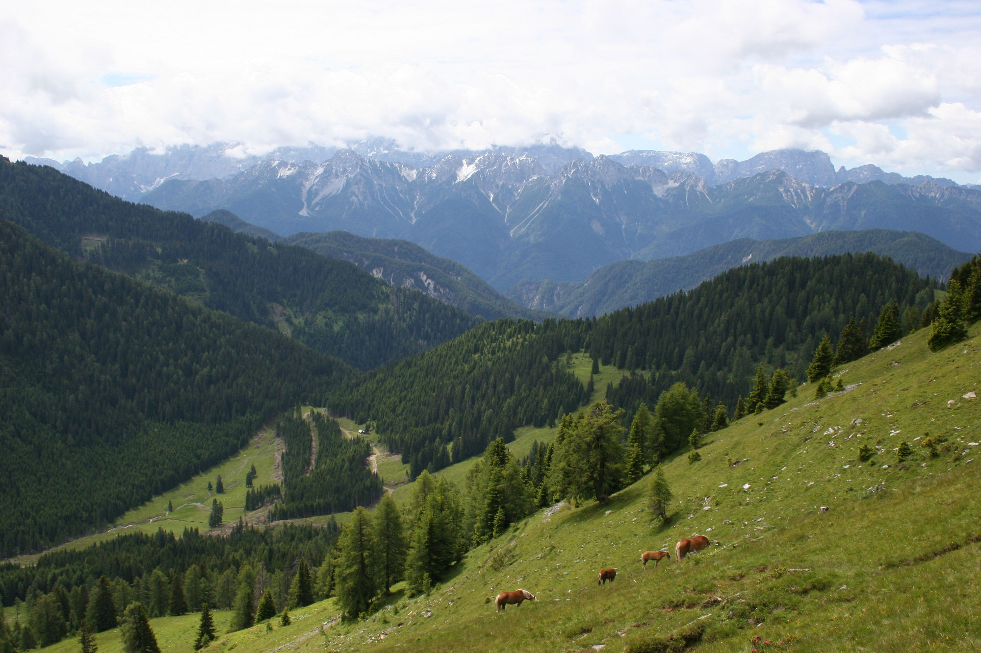 Wenn Sie von der Terrasse aus Ihren Blick nach Süden richten schauen Sie direkt auf den Poludnig und können ohne Fernglas unterhalb der Bergspitze die Poludnikalm erkennen. Etwas unterhalb der Poludnigalm liegen die Eggeralm mit einer Käserei http://www.gailtaler-almkaese.at/index.php?option=com_content&view=article&id=51&Itemid=11