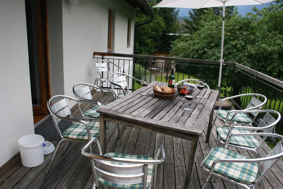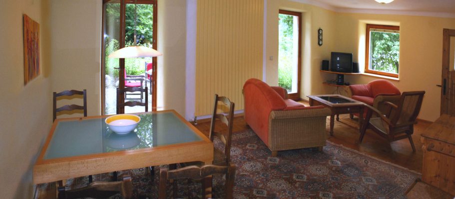 mit 84 m² Wohnfläche besteht aus einem großen Wohn- / Esszimmer mit Sat-TV, Radio und direktem Zugang zur Gartenterrasse. Die Gartenterrasse ist nach Süden ausgerichtet, mit Blick ins Gailtal und auf die Karnischen Alpen sowie Sonne von morgens bis abends. Das Wohnzimmer führt direkt in die geräumige Küche, die auch gehobenen Ansprüchen guter Hobbyköche gerecht wird; selbstverständlich mit Spülmaschine.
